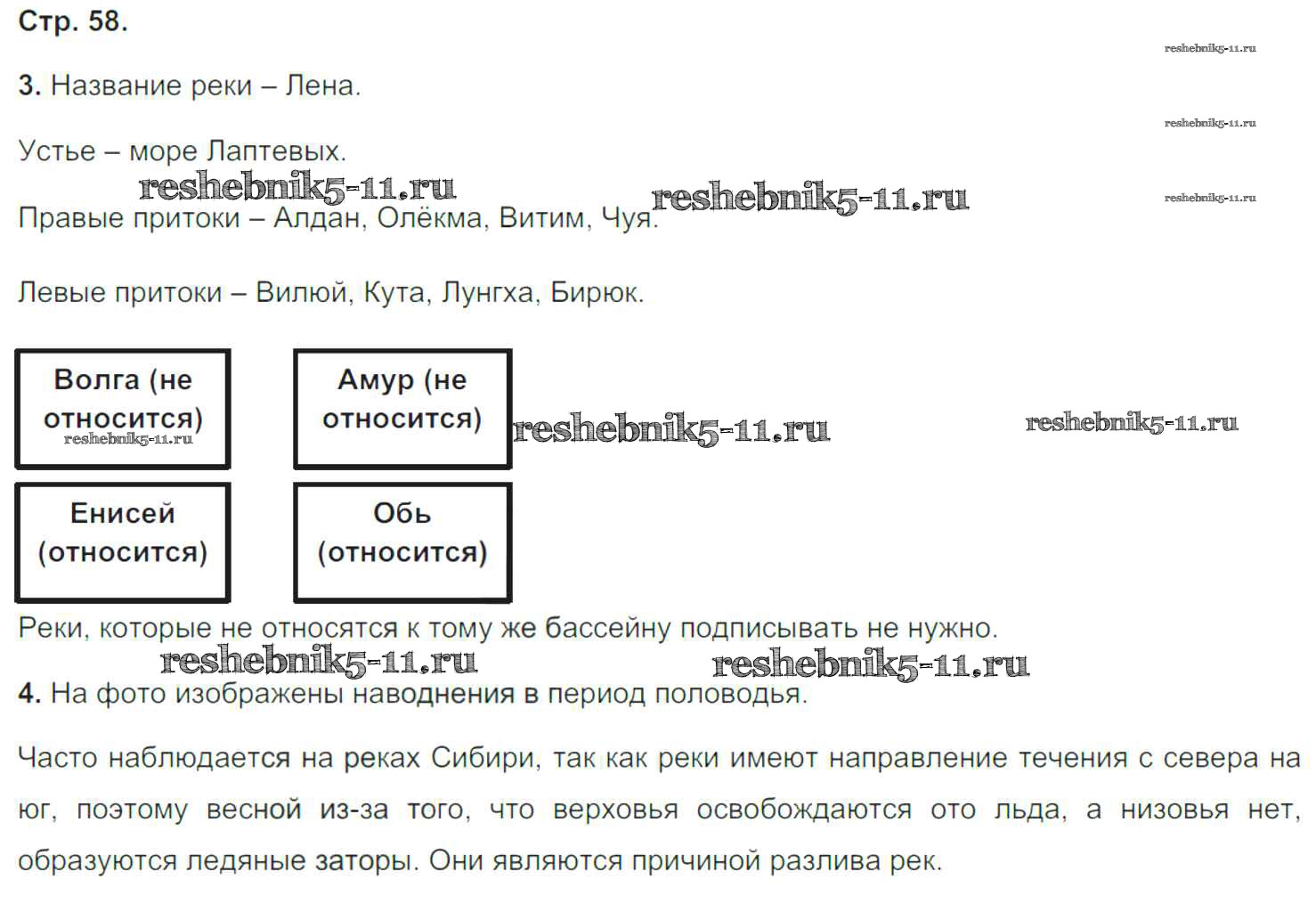 Готовая домашняя работа с ответами по Географии за 8 класс Ольховая, Банников Тетрадь-тренажер Сферы Просвещение 2016 ФГОС - Страницы 58