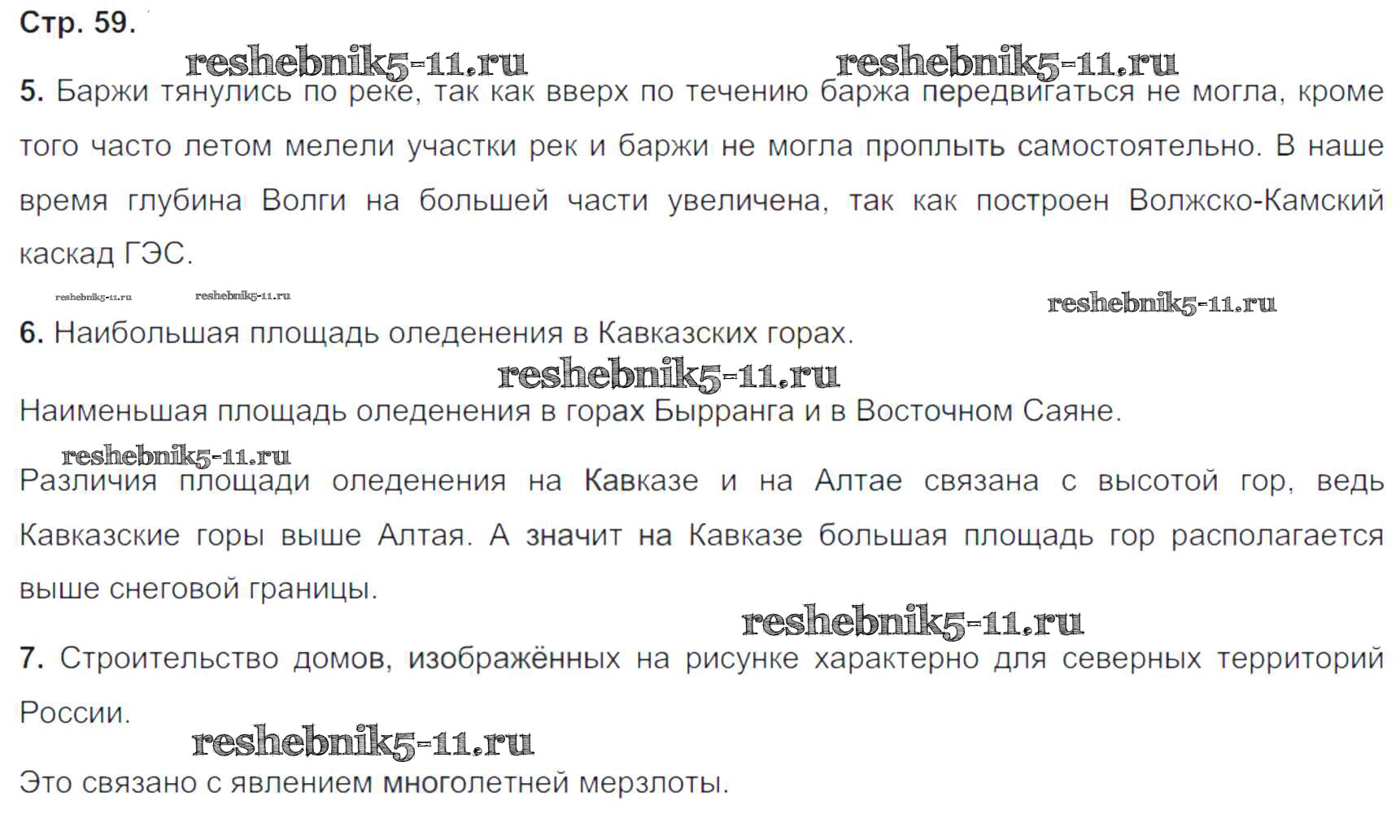 Готовая домашняя работа с ответами по Географии за 8 класс Ольховая, Банников Тетрадь-тренажер Сферы Просвещение 2016 ФГОС - Страницы 59