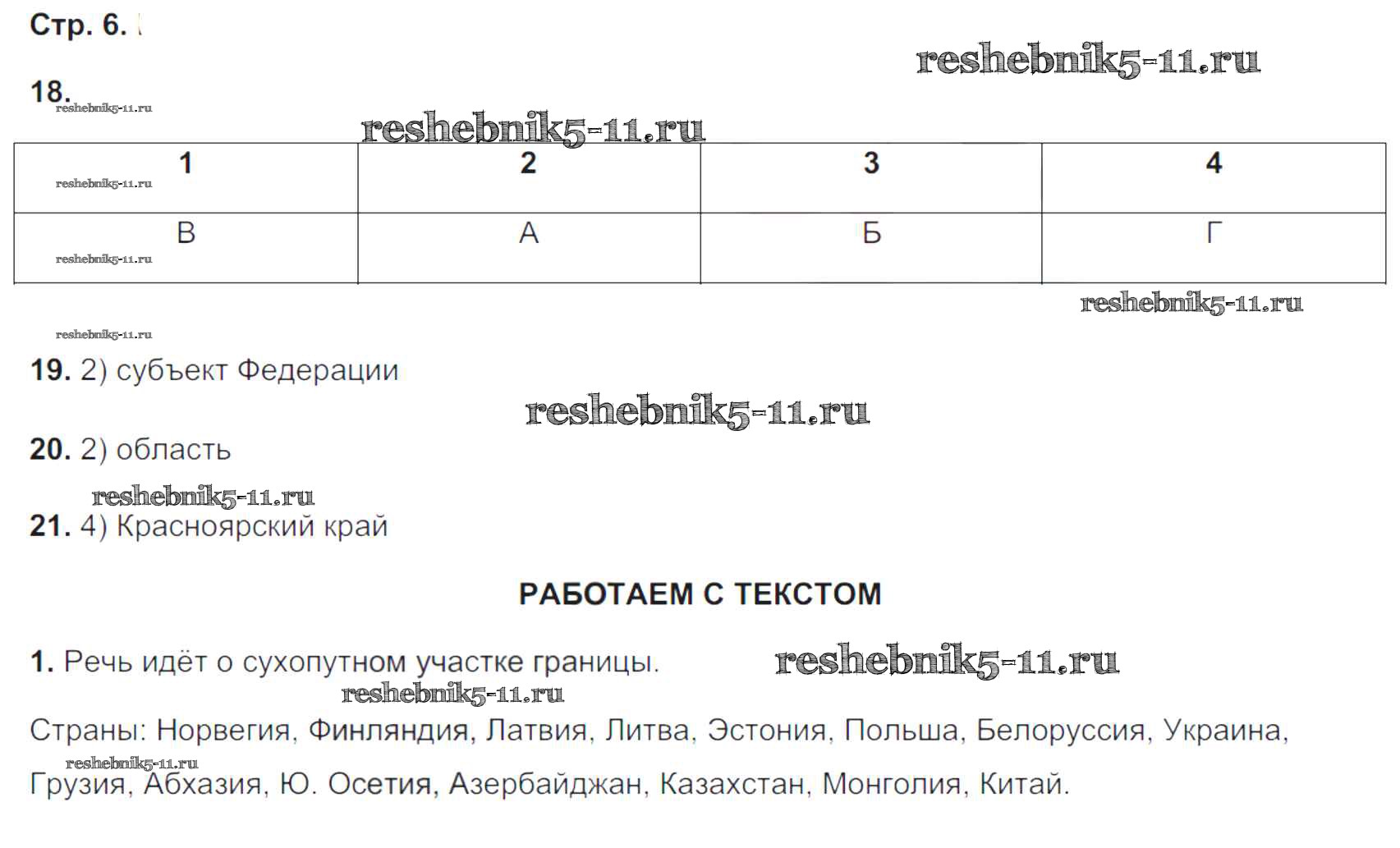 Готовая домашняя работа с ответами по Географии за 8 класс Ольховая, Банников Тетрадь-тренажер Сферы Просвещение 2016 ФГОС - Страницы 6