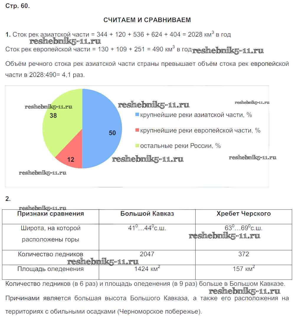 Готовая домашняя работа с ответами по Географии за 8 класс Ольховая, Банников Тетрадь-тренажер Сферы Просвещение 2016 ФГОС - Страницы 60