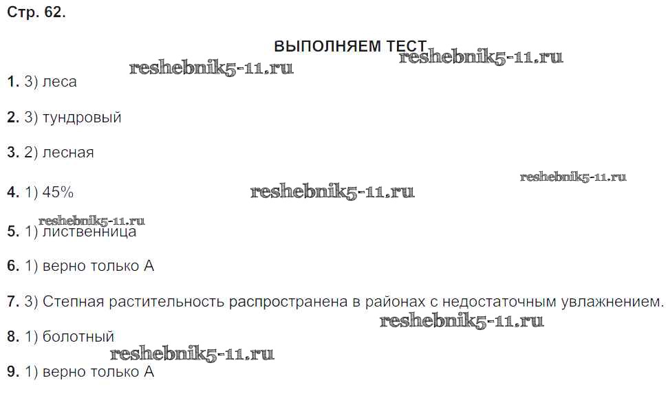 Готовая домашняя работа с ответами по Географии за 8 класс Ольховая, Банников Тетрадь-тренажер Сферы Просвещение 2016 ФГОС - Страницы 62
