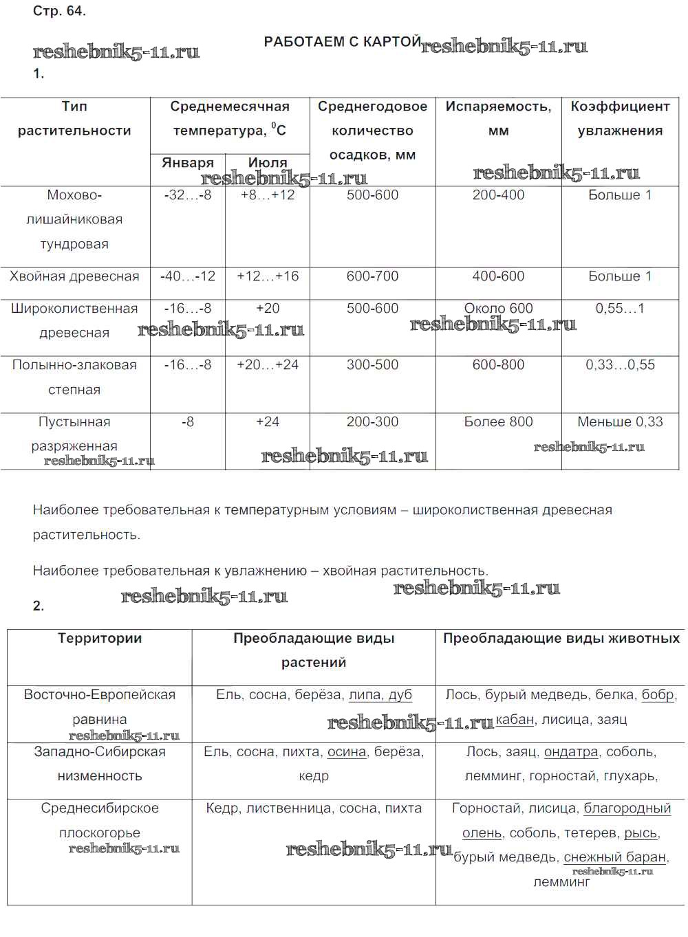Готовая домашняя работа с ответами по Географии за 8 класс Ольховая, Банников Тетрадь-тренажер Сферы Просвещение 2016 ФГОС - Страницы 64
