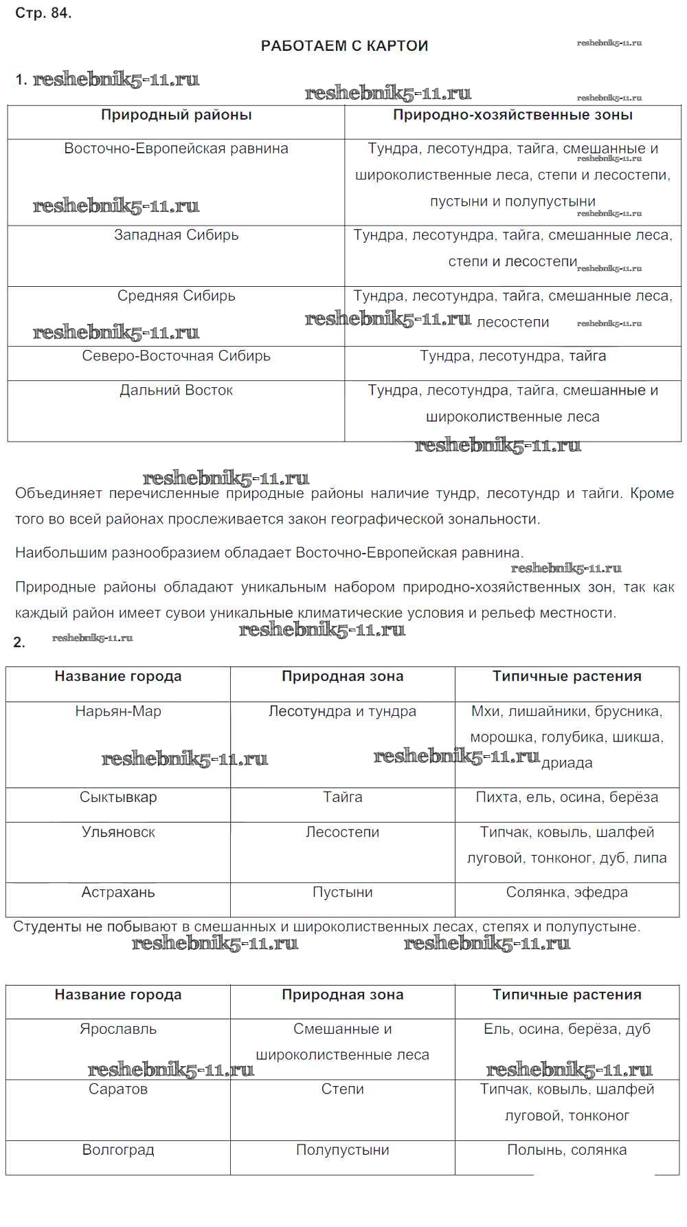 Готовая домашняя работа с ответами по Географии за 8 класс Ольховая, Банников Тетрадь-тренажер Сферы Просвещение 2016 ФГОС - Страницы 84