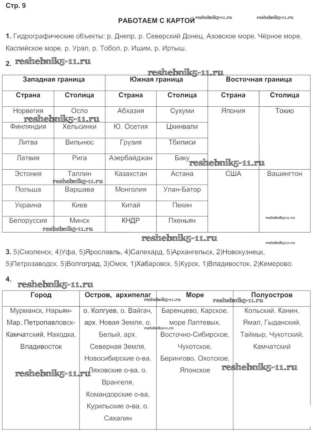 Готовая домашняя работа с ответами по Географии за 8 класс Ольховая, Банников Тетрадь-тренажер Сферы Просвещение 2016 ФГОС - Страницы 9