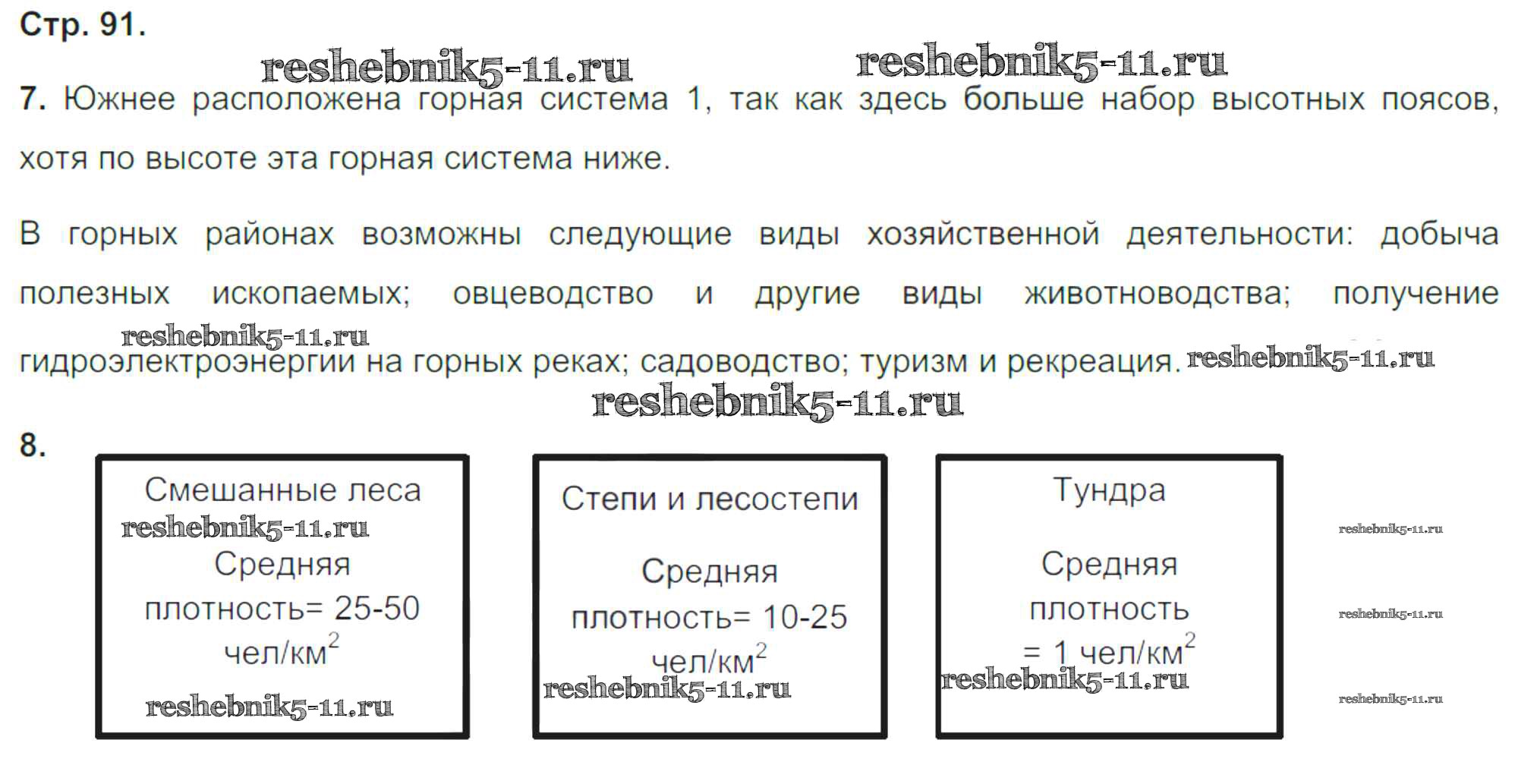 Готовая домашняя работа с ответами по Географии за 8 класс Ольховая, Банников Тетрадь-тренажер Сферы Просвещение 2016 ФГОС - Страницы 91
