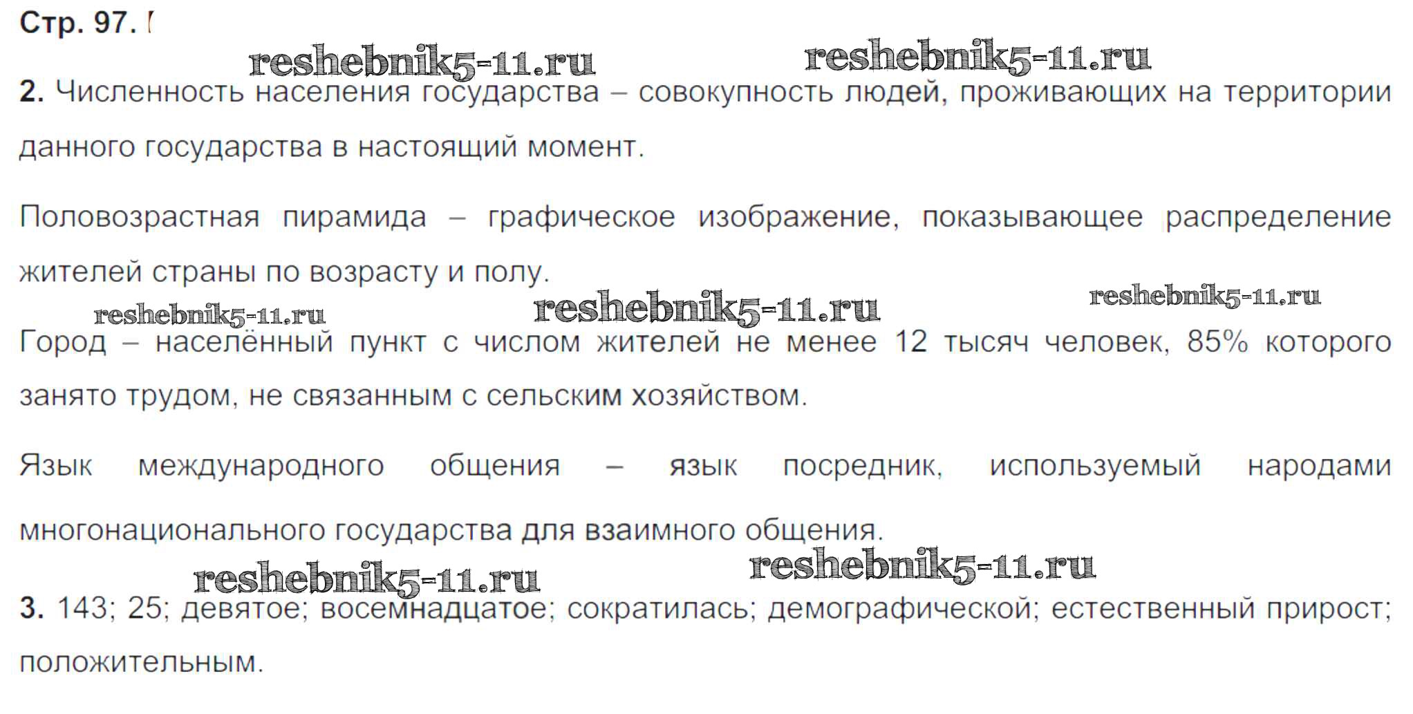 Готовая домашняя работа с ответами по Географии за 8 класс Ольховая, Банников Тетрадь-тренажер Сферы Просвещение 2016 ФГОС - Страницы 97