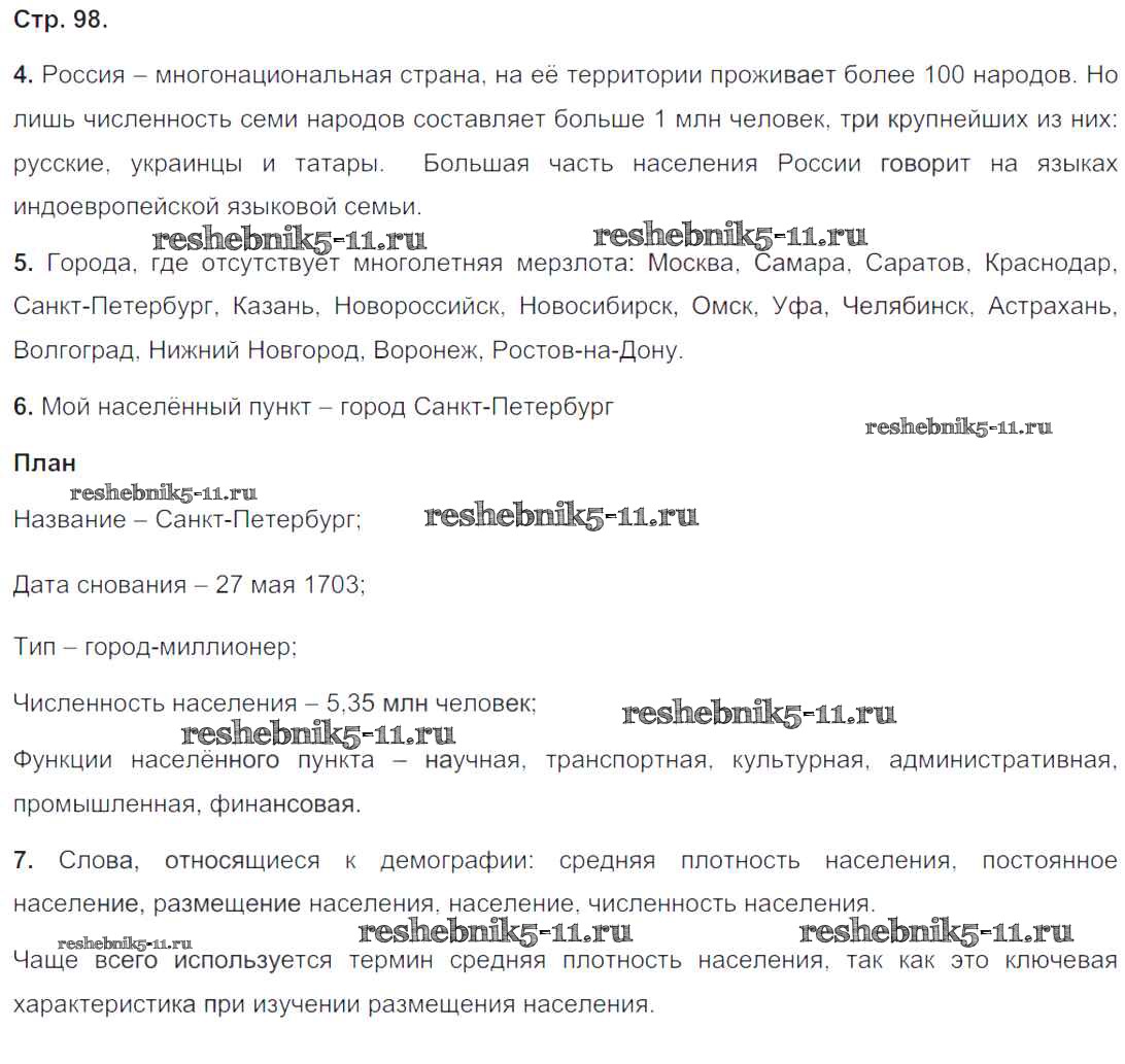 Готовая домашняя работа с ответами по Географии за 8 класс Ольховая, Банников Тетрадь-тренажер Сферы Просвещение 2016 ФГОС - Страницы 98
