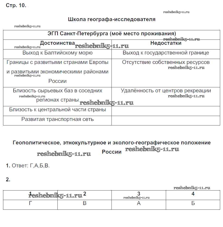 Готовая домашняя работа с ответами по Географии за 8 класс Пятунин, Таможняя Рабочая тетрадь Алгоритм успеха Часть 1, 2 Вентана-граф 2017 ФГОС - Часть 1. Страницы 10