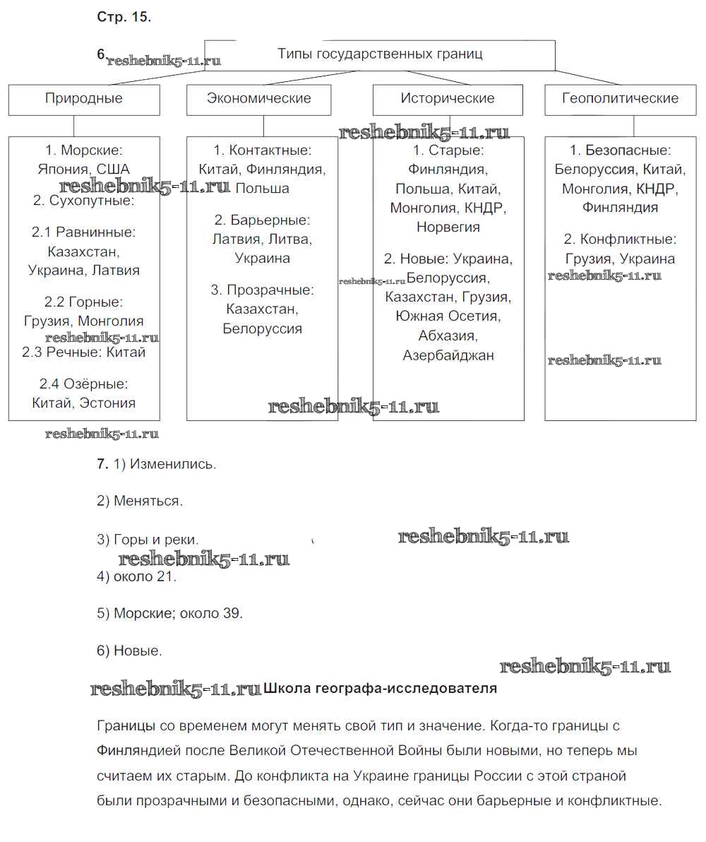 Готовая домашняя работа с ответами по Географии за 8 класс Пятунин, Таможняя Рабочая тетрадь Алгоритм успеха Часть 1, 2 Вентана-граф 2017 ФГОС - Часть 1. Страницы 15