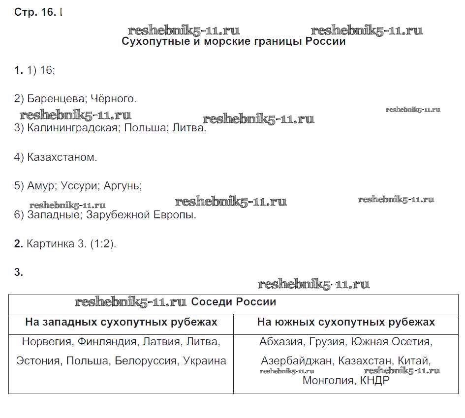 Готовая домашняя работа с ответами по Географии за 8 класс Пятунин, Таможняя Рабочая тетрадь Алгоритм успеха Часть 1, 2 Вентана-граф 2017 ФГОС - Часть 1. Страницы 16