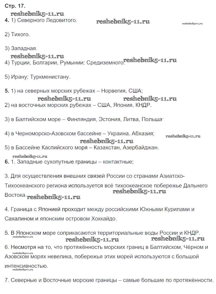 Готовая домашняя работа с ответами по Географии за 8 класс Пятунин, Таможняя Рабочая тетрадь Алгоритм успеха Часть 1, 2 Вентана-граф 2017 ФГОС - Часть 1. Страницы 17