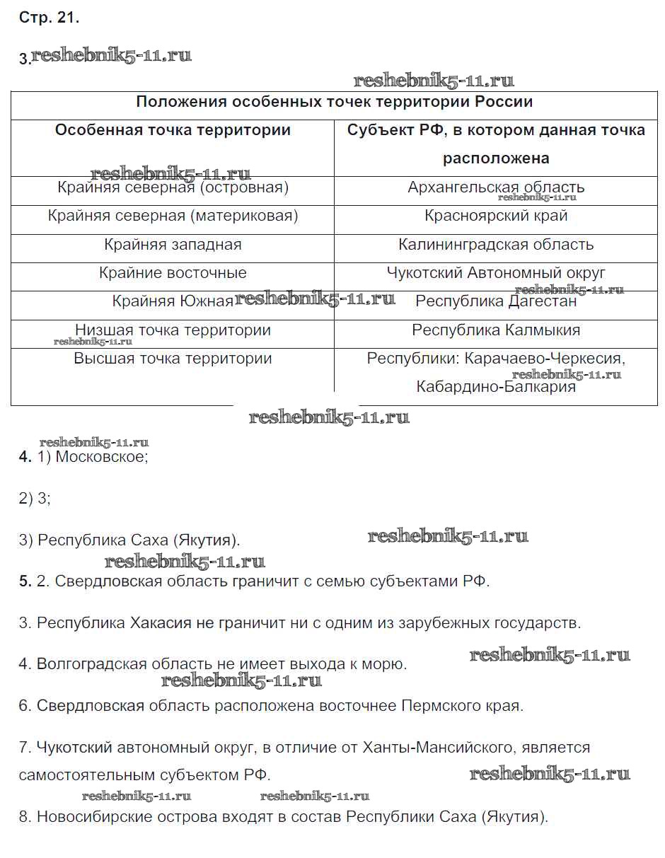 Готовая домашняя работа с ответами по Географии за 8 класс Пятунин, Таможняя Рабочая тетрадь Алгоритм успеха Часть 1, 2 Вентана-граф 2017 ФГОС - Часть 1. Страницы 21