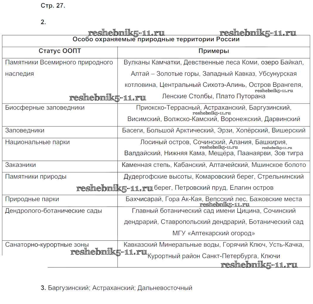 Готовая домашняя работа с ответами по Географии за 8 класс Пятунин, Таможняя Рабочая тетрадь Алгоритм успеха Часть 1, 2 Вентана-граф 2017 ФГОС - Часть 1. Страницы 27