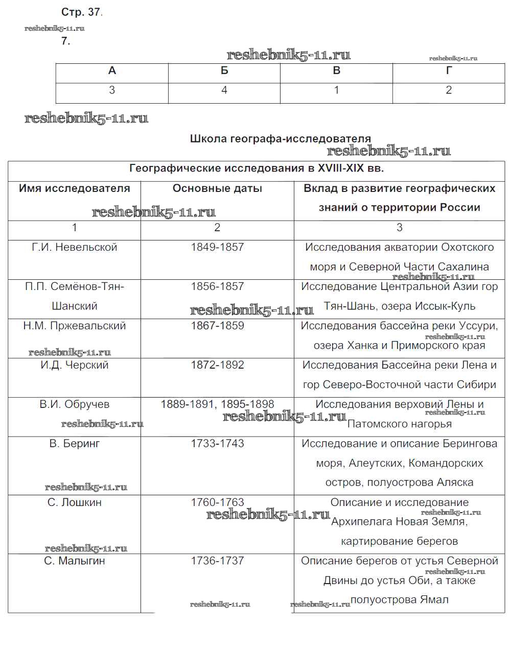 Готовая домашняя работа с ответами по Географии за 8 класс Пятунин, Таможняя Рабочая тетрадь Алгоритм успеха Часть 1, 2 Вентана-граф 2017 ФГОС - Часть 1. Страницы 37