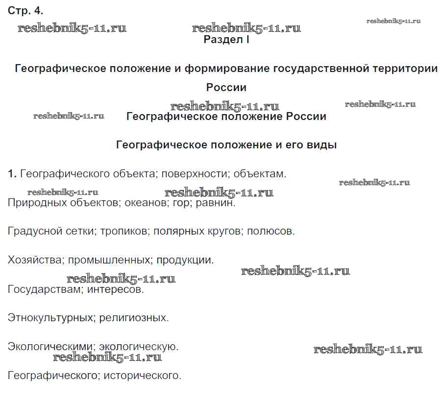 Готовая домашняя работа с ответами по Географии за 8 класс Пятунин, Таможняя Рабочая тетрадь Алгоритм успеха Часть 1, 2 Вентана-граф 2017 ФГОС - Часть 1. Страницы 4