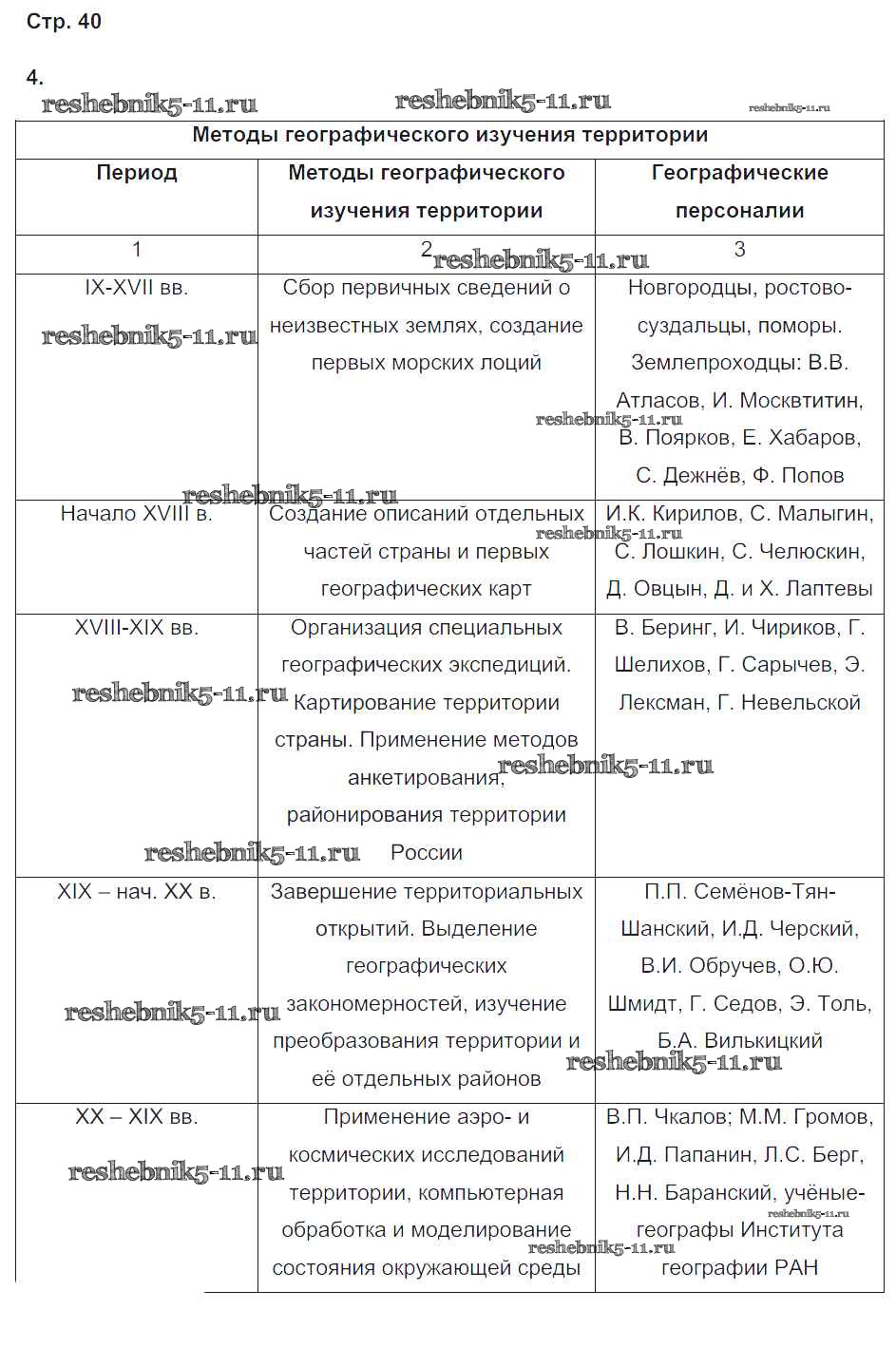 Готовая домашняя работа с ответами по Географии за 8 класс Пятунин, Таможняя Рабочая тетрадь Алгоритм успеха Часть 1, 2 Вентана-граф 2017 ФГОС - Часть 1. Страницы 40