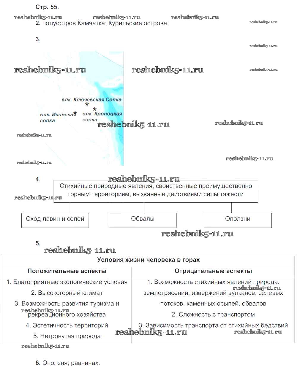 Готовая домашняя работа с ответами по Географии за 8 класс Пятунин, Таможняя Рабочая тетрадь Алгоритм успеха Часть 1, 2 Вентана-граф 2017 ФГОС - Часть 1. Страницы 55