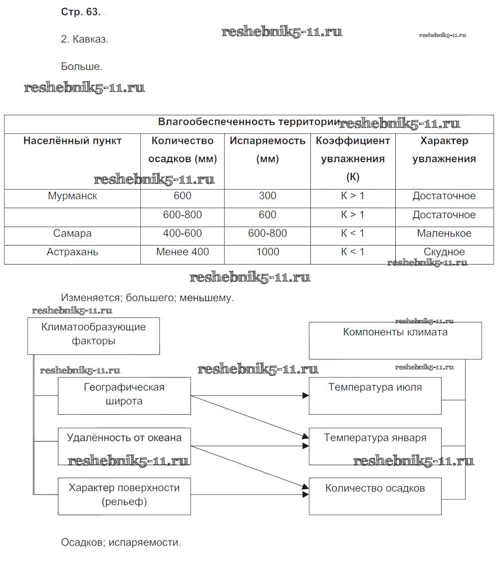 Готовая домашняя работа с ответами по Географии за 8 класс Пятунин, Таможняя Рабочая тетрадь Алгоритм успеха Часть 1, 2 Вентана-граф 2017 ФГОС - Часть 1. Страницы 63