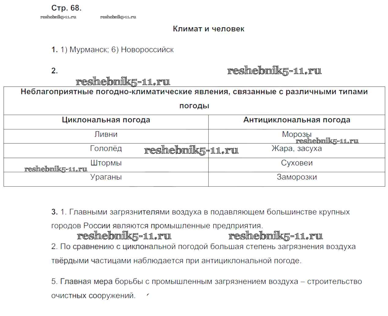 Готовая домашняя работа с ответами по Географии за 8 класс Пятунин, Таможняя Рабочая тетрадь Алгоритм успеха Часть 1, 2 Вентана-граф 2017 ФГОС - Часть 1. Страницы 68