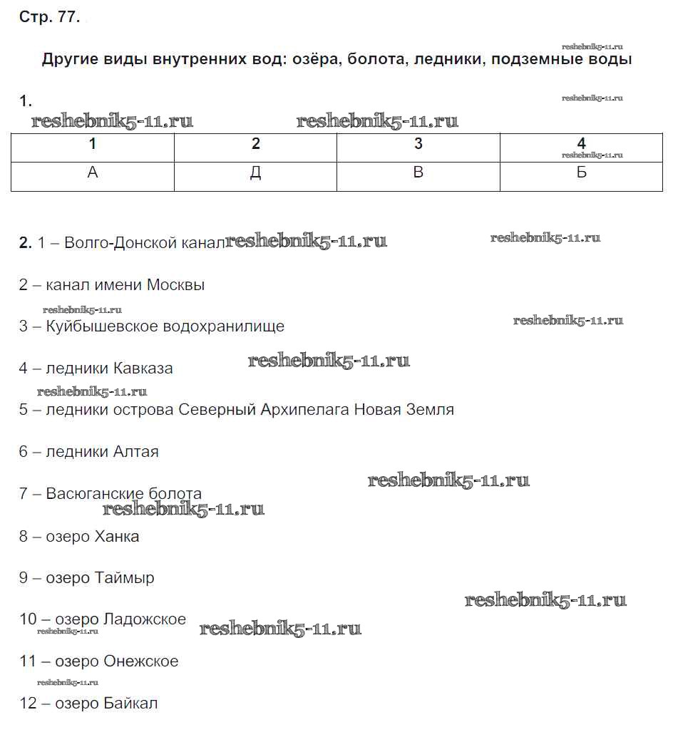 Готовая домашняя работа с ответами по Географии за 8 класс Пятунин, Таможняя Рабочая тетрадь Алгоритм успеха Часть 1, 2 Вентана-граф 2017 ФГОС - Часть 1. Страницы 77