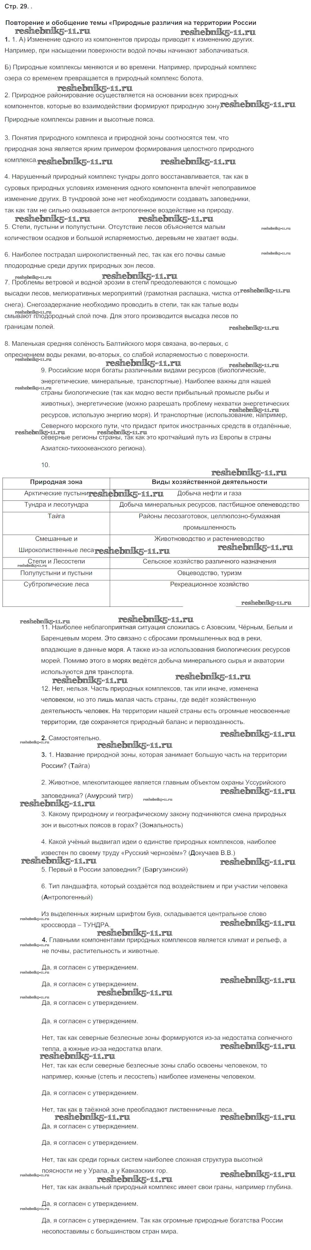 Готовая домашняя работа с ответами по Географии за 8 класс Пятунин, Таможняя Рабочая тетрадь Алгоритм успеха Часть 1, 2 Вентана-граф 2017 ФГОС - Часть 2. Страницы 29