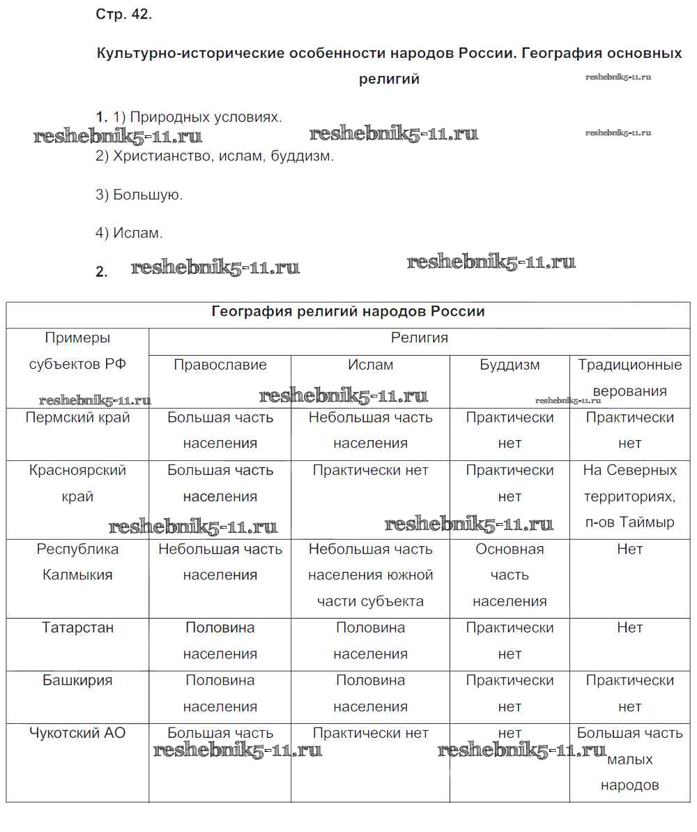 Готовая домашняя работа с ответами по Географии за 8 класс Пятунин, Таможняя Рабочая тетрадь Алгоритм успеха Часть 1, 2 Вентана-граф 2017 ФГОС - Часть 2. Страницы 42