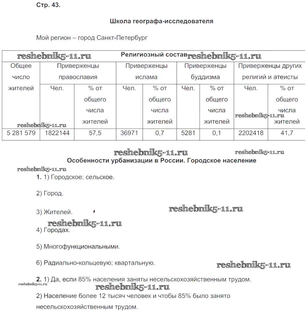Готовая домашняя работа с ответами по Географии за 8 класс Пятунин, Таможняя Рабочая тетрадь Алгоритм успеха Часть 1, 2 Вентана-граф 2017 ФГОС - Часть 2. Страницы 43