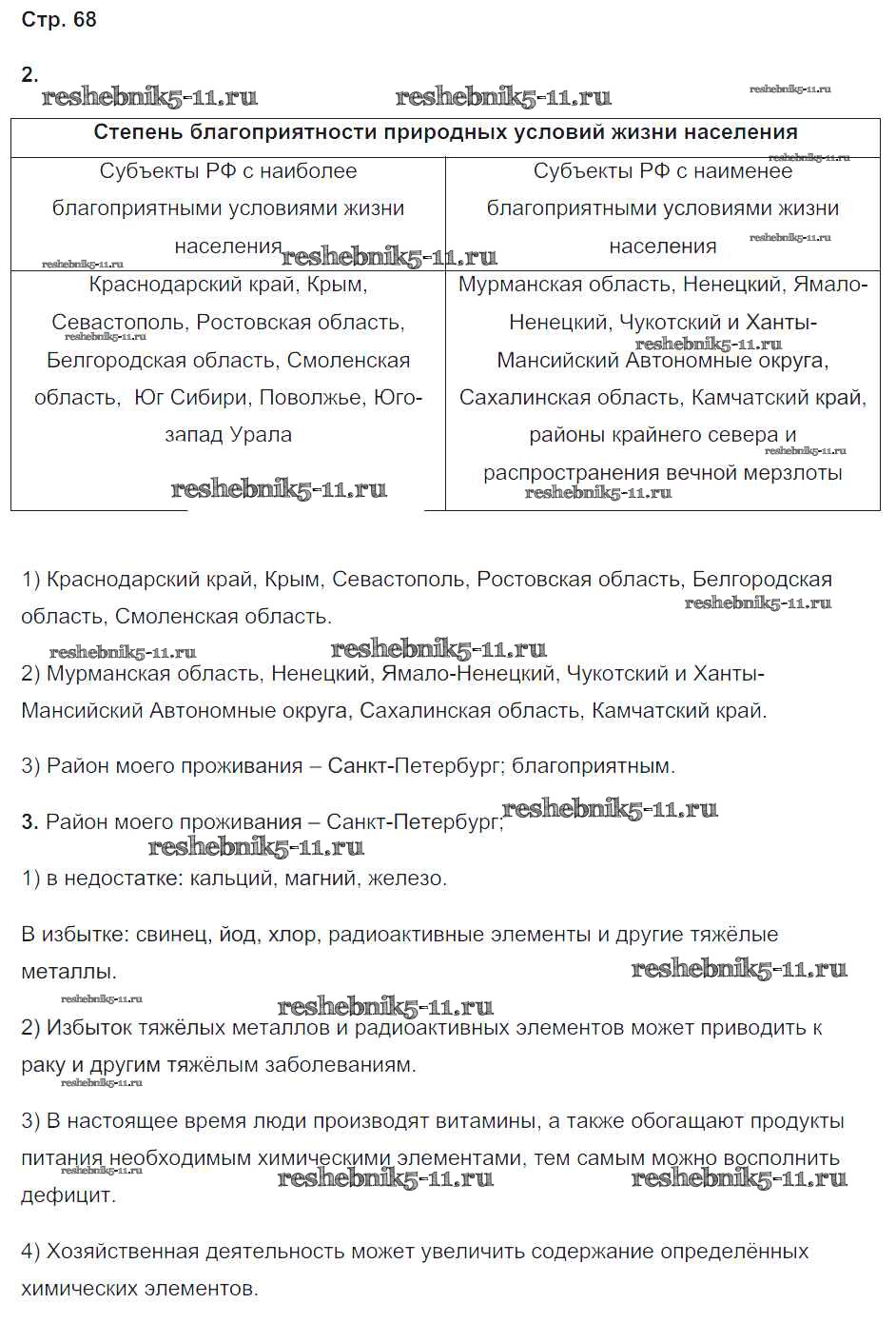 Готовая домашняя работа с ответами по Географии за 8 класс Пятунин, Таможняя Рабочая тетрадь Алгоритм успеха Часть 1, 2 Вентана-граф 2017 ФГОС - Часть 2. Страницы 68