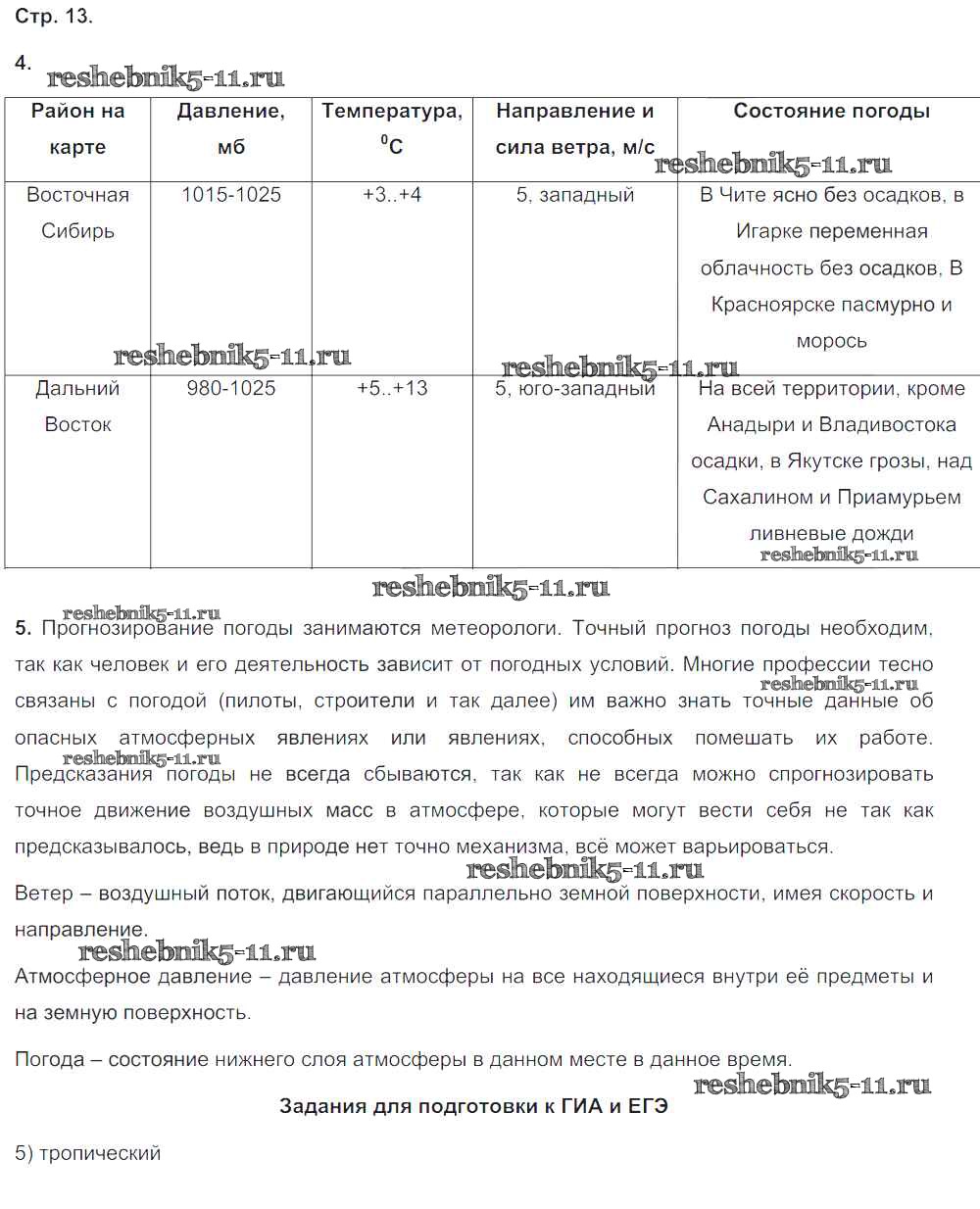 Готовая домашняя работа с ответами по Географии за 8 класс Сиротин Рабочая тетрадь Дрофа 2020 ФГОС - Страницы 13