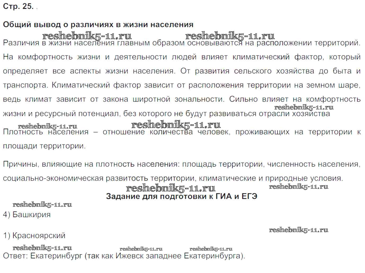 Готовая домашняя работа с ответами по Географии за 8 класс Сиротин Рабочая тетрадь Дрофа 2020 ФГОС - Страницы 25
