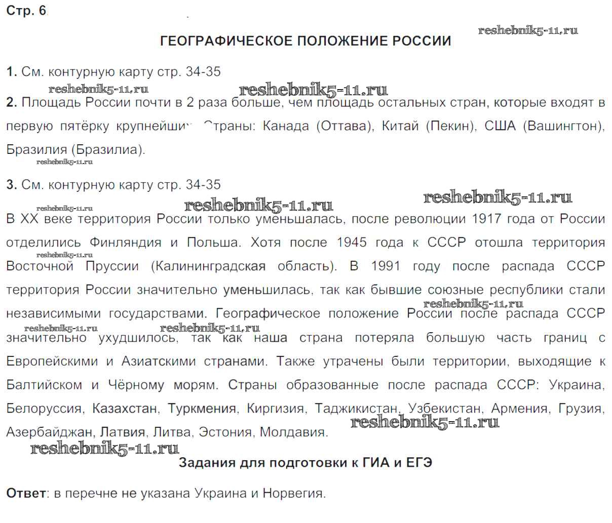 Готовая домашняя работа с ответами по Географии за 8 класс Сиротин Рабочая тетрадь Дрофа 2020 ФГОС - Страницы 6
