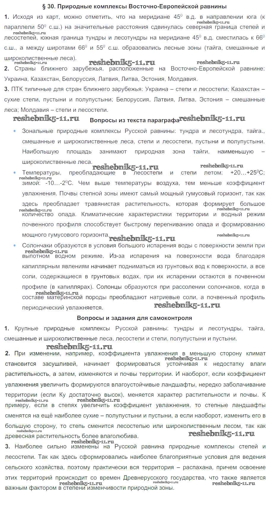 Готовая домашняя работа с ответами по Географии за 8 класс Баринова Учебник УМК Дрофа 2019 ФГОС - Параграфы 30