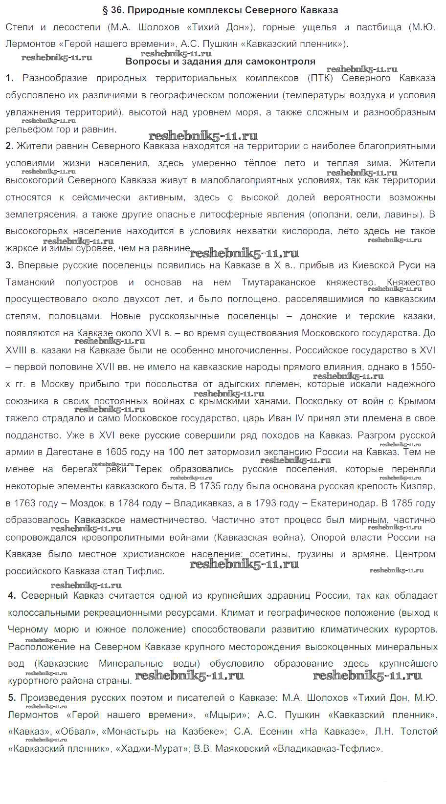 Готовая домашняя работа с ответами по Географии за 8 класс Баринова Учебник УМК Дрофа 2019 ФГОС - Параграфы 36