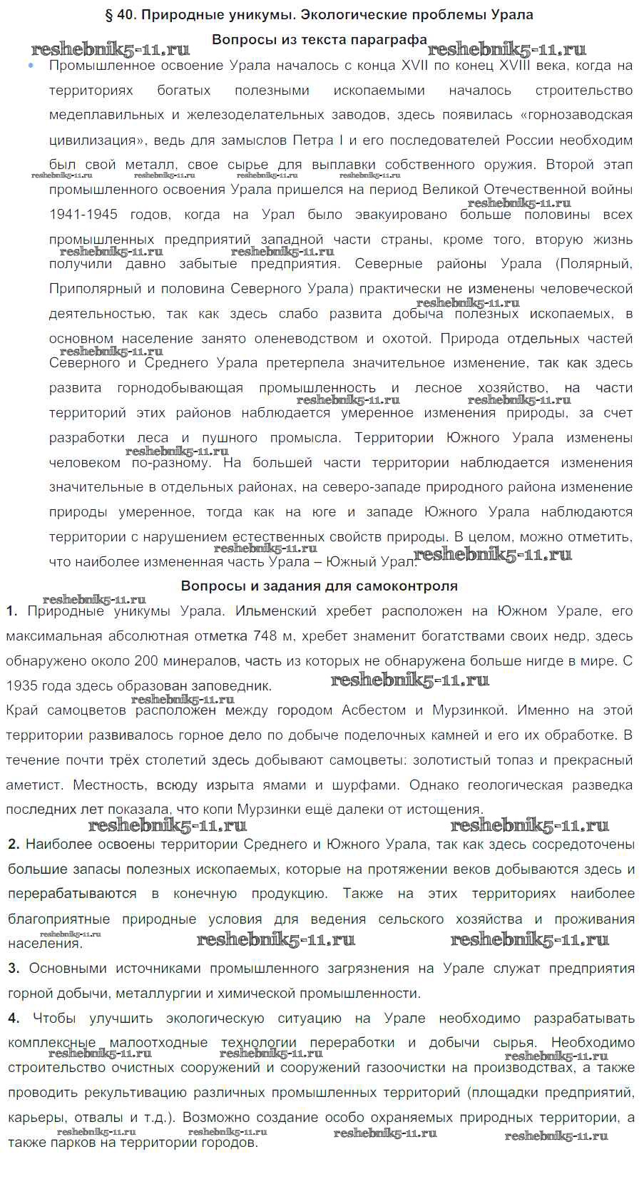 Готовая домашняя работа с ответами по Географии за 8 класс Баринова Учебник УМК Дрофа 2019 ФГОС - Параграфы 40