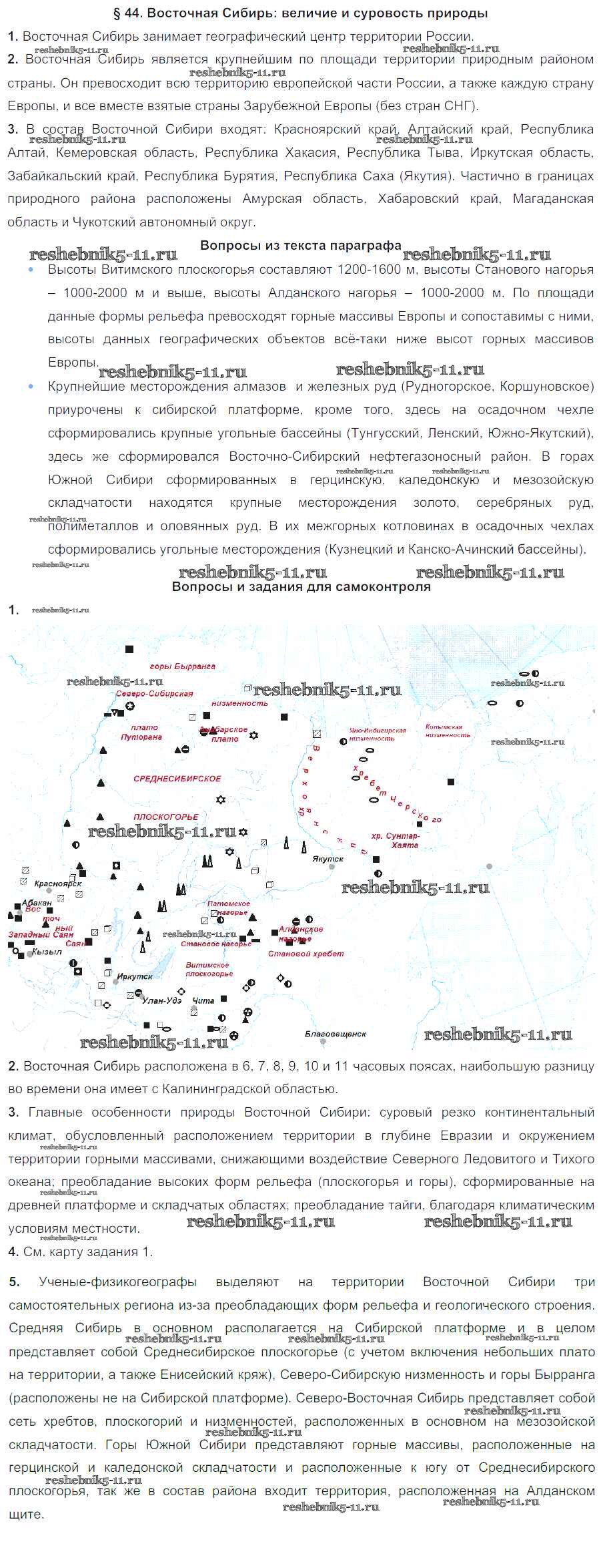 Готовая домашняя работа с ответами по Географии за 8 класс Баринова Учебник УМК Дрофа 2019 ФГОС - Параграфы 44