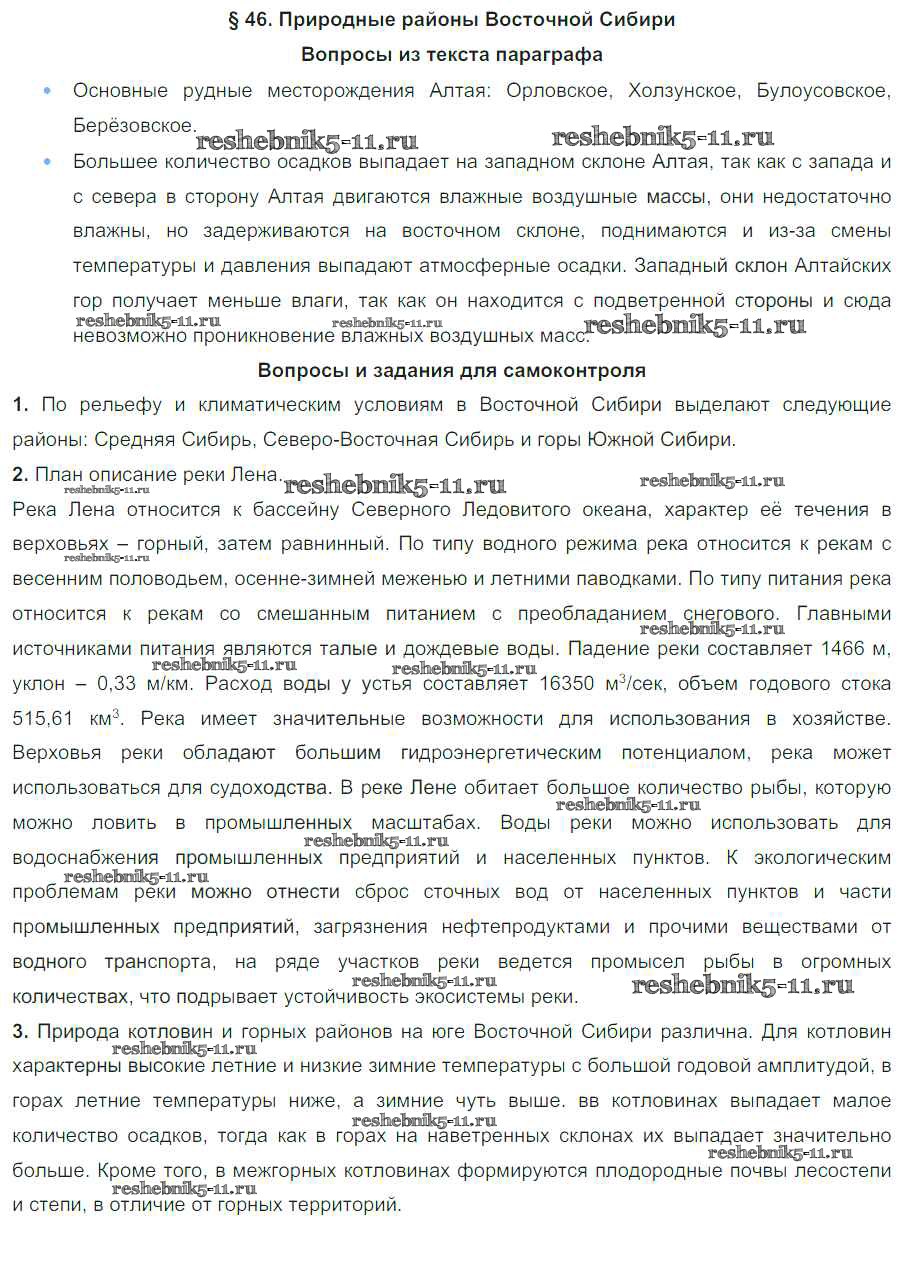 Готовая домашняя работа с ответами по Географии за 8 класс Баринова Учебник УМК Дрофа 2019 ФГОС - Параграфы 46