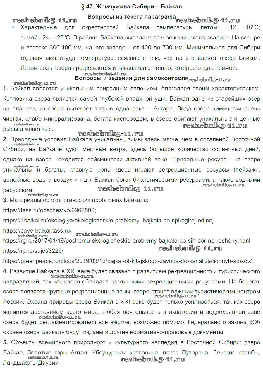 Готовая домашняя работа с ответами по Географии за 8 класс Баринова Учебник УМК Дрофа 2019 ФГОС - Параграфы 47