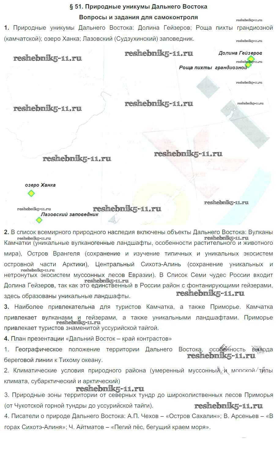 Готовая домашняя работа с ответами по Географии за 8 класс Баринова Учебник УМК Дрофа 2019 ФГОС - Параграфы 51