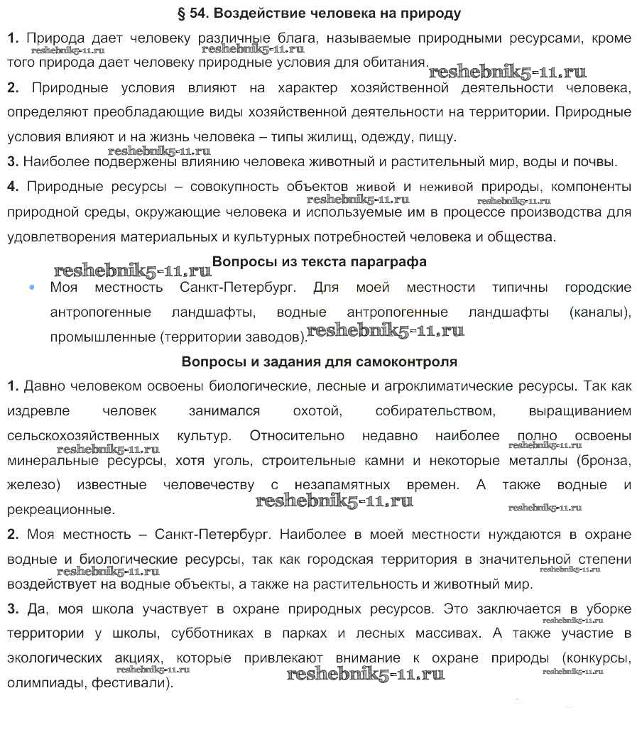 Готовая домашняя работа с ответами по Географии за 8 класс Баринова Учебник УМК Дрофа 2019 ФГОС - Параграфы 54
