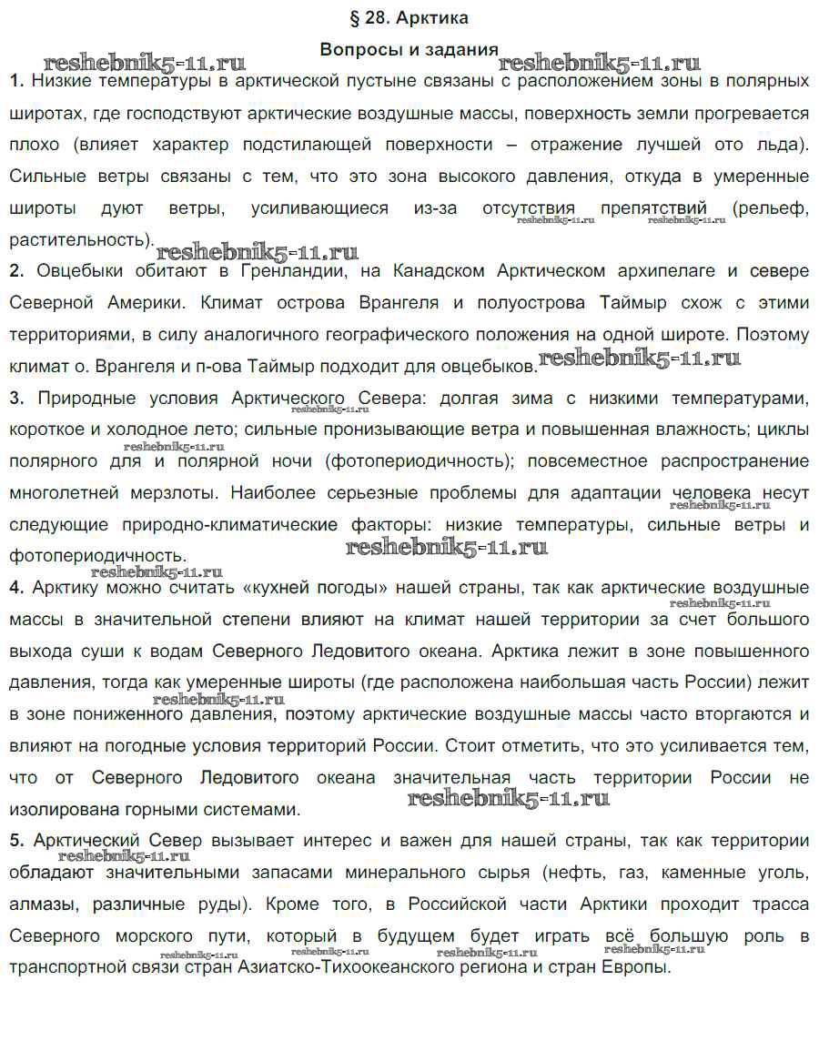 Готовая домашняя работа с ответами по Географии за 8 класс Алексеев Учебник УМК Дрофа 2018 ФГОС - Параграфы 28