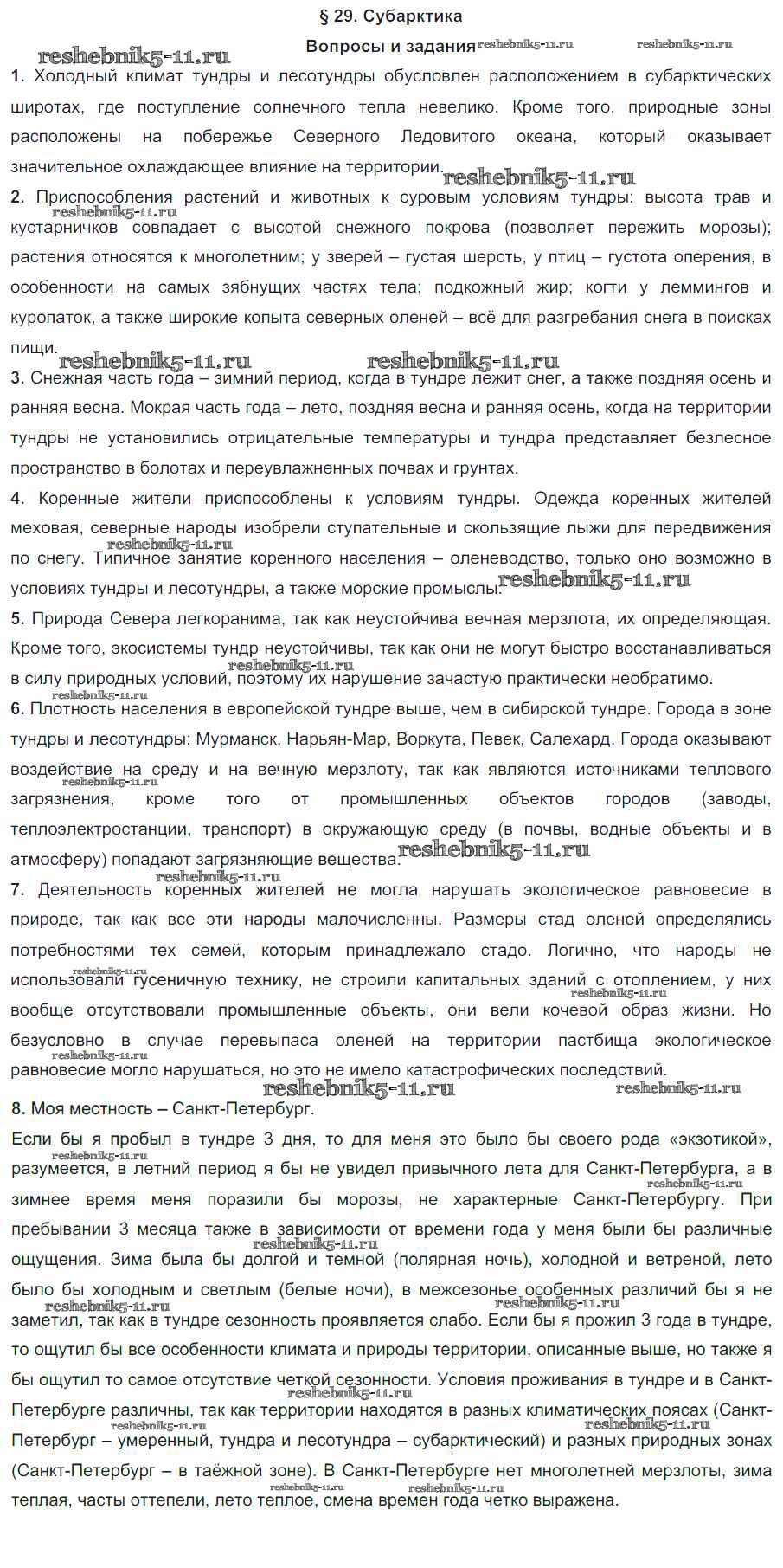 Готовая домашняя работа с ответами по Географии за 8 класс Алексеев Учебник УМК Дрофа 2018 ФГОС - Параграфы 29