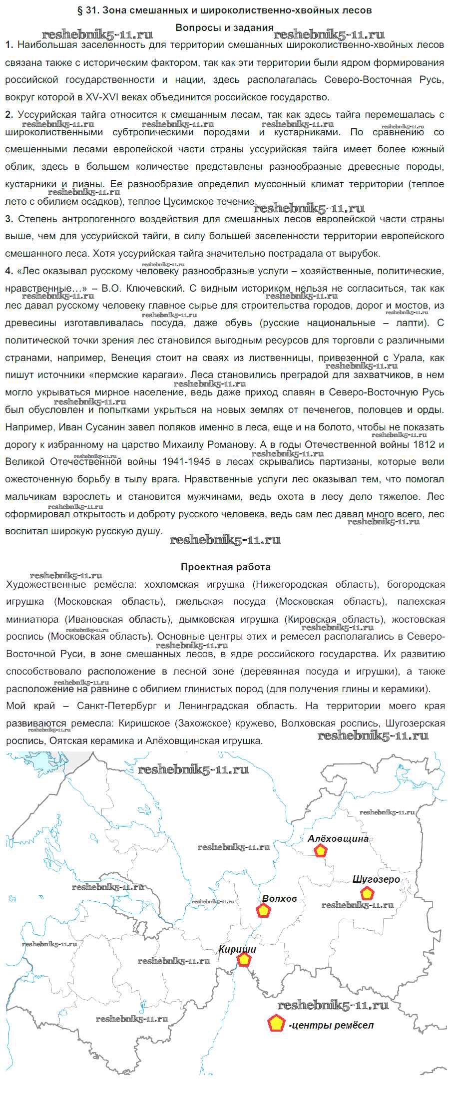 Готовая домашняя работа с ответами по Географии за 8 класс Алексеев Учебник УМК Дрофа 2018 ФГОС - Параграфы 31