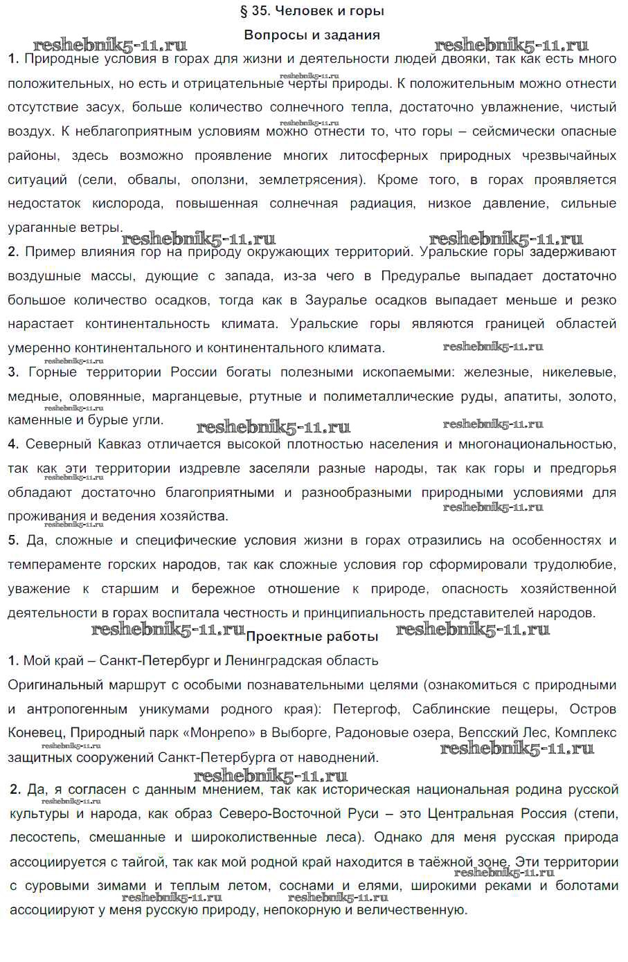 Готовая домашняя работа с ответами по Географии за 8 класс Алексеев Учебник УМК Дрофа 2018 ФГОС - Параграфы 35