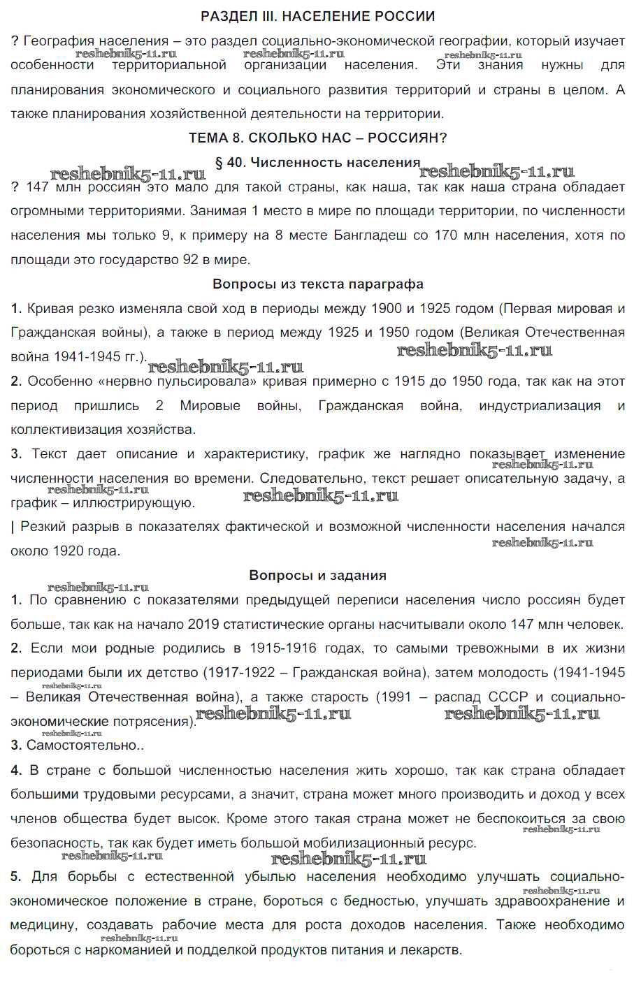 Готовая домашняя работа с ответами по Географии за 8 класс Алексеев Учебник УМК Дрофа 2018 ФГОС - Параграфы 40