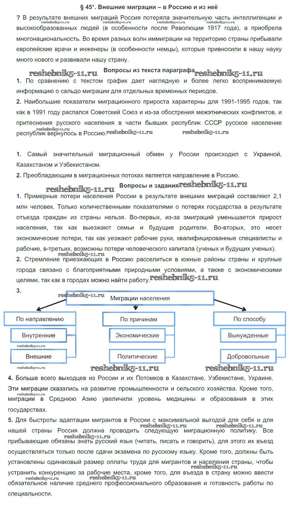 Готовая домашняя работа с ответами по Географии за 8 класс Алексеев Учебник УМК Дрофа 2018 ФГОС - Параграфы 45