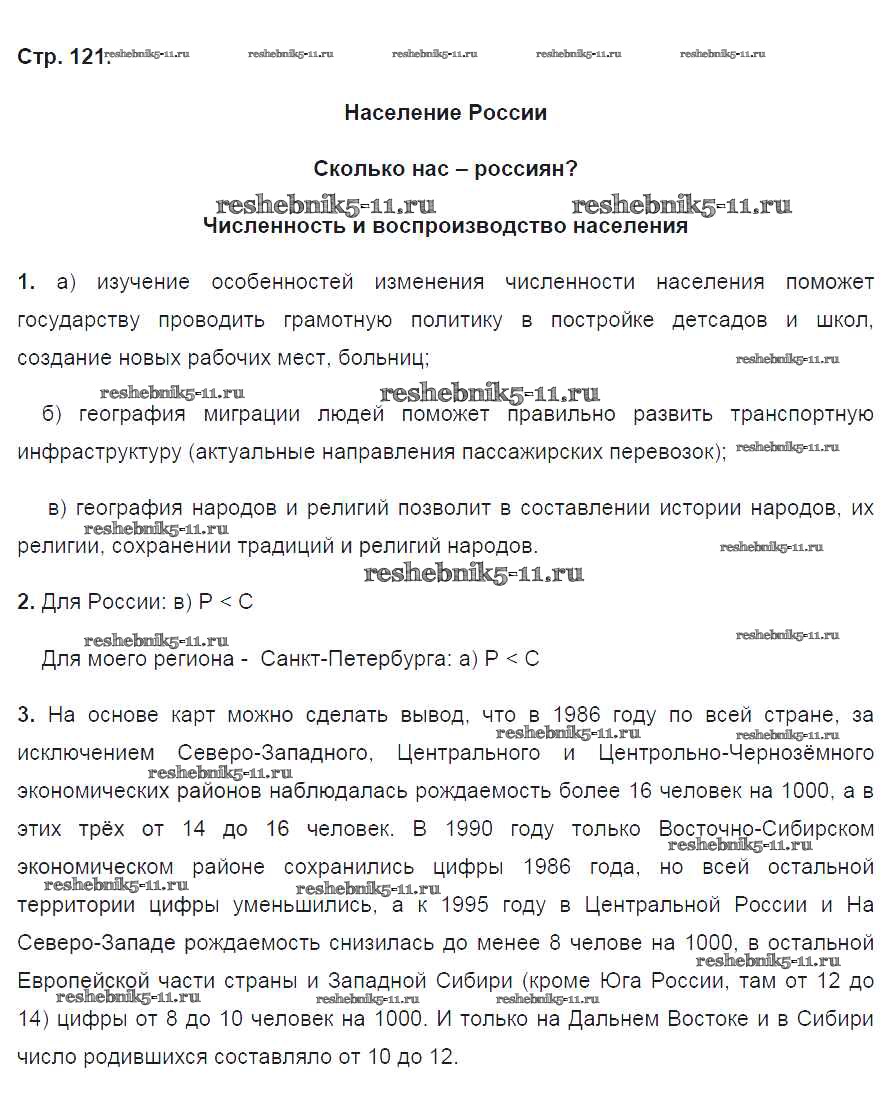 Готовая домашняя работа с ответами по Географии за 8 класс Ким, Марченко, Низовцев Рабочая тетрадь УМК Дрофа 2016 ФГОС - Страницы 121