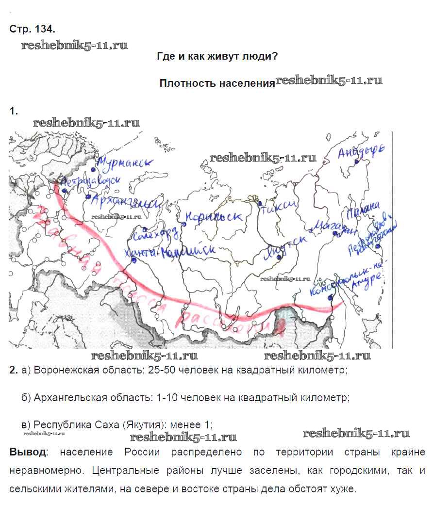 Готовая домашняя работа с ответами по Географии за 8 класс Ким, Марченко, Низовцев Рабочая тетрадь УМК Дрофа 2016 ФГОС - Страницы 134