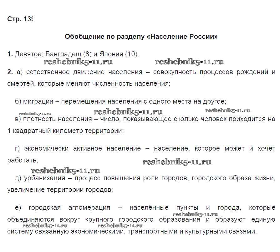 Готовая домашняя работа с ответами по Географии за 8 класс Ким, Марченко, Низовцев Рабочая тетрадь УМК Дрофа 2016 ФГОС - Страницы 139