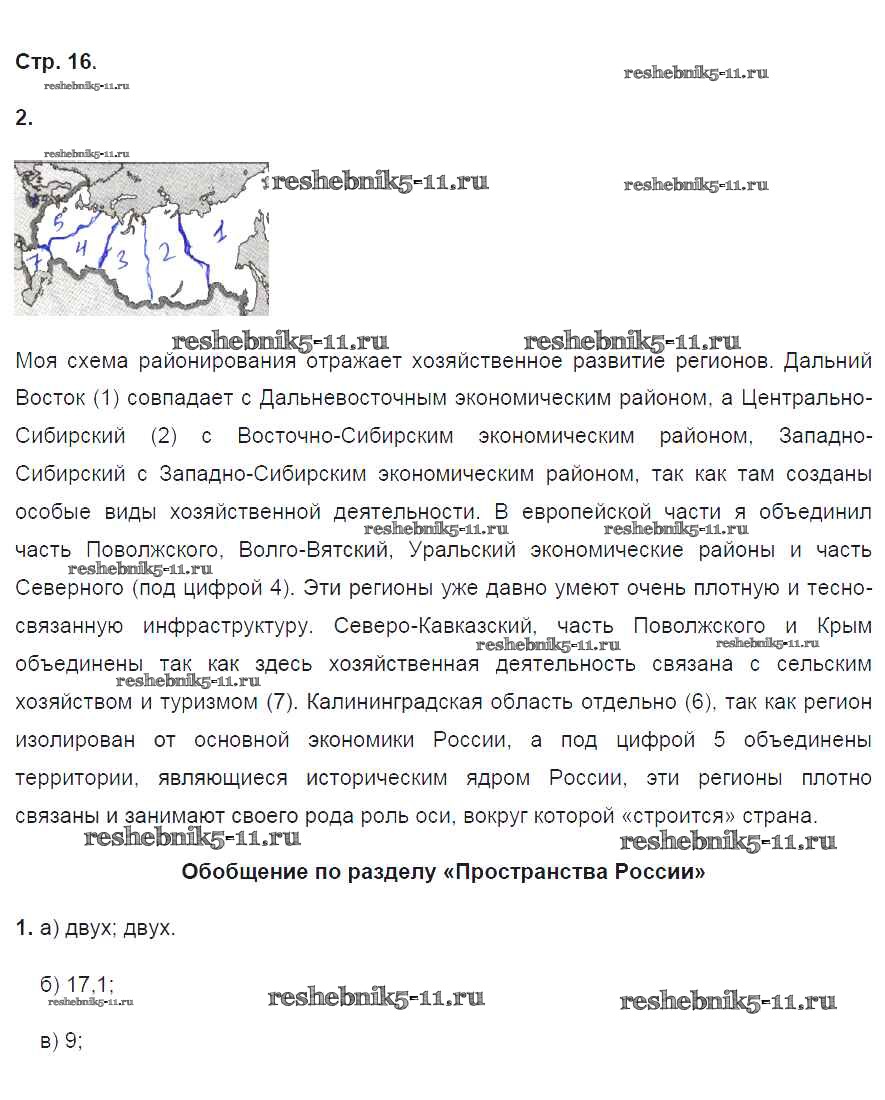 Готовая домашняя работа с ответами по Географии за 8 класс Ким, Марченко, Низовцев Рабочая тетрадь УМК Дрофа 2016 ФГОС - Страницы 16