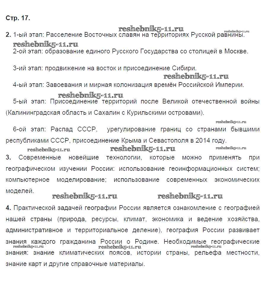 Готовая домашняя работа с ответами по Географии за 8 класс Ким, Марченко, Низовцев Рабочая тетрадь УМК Дрофа 2016 ФГОС - Страницы 17